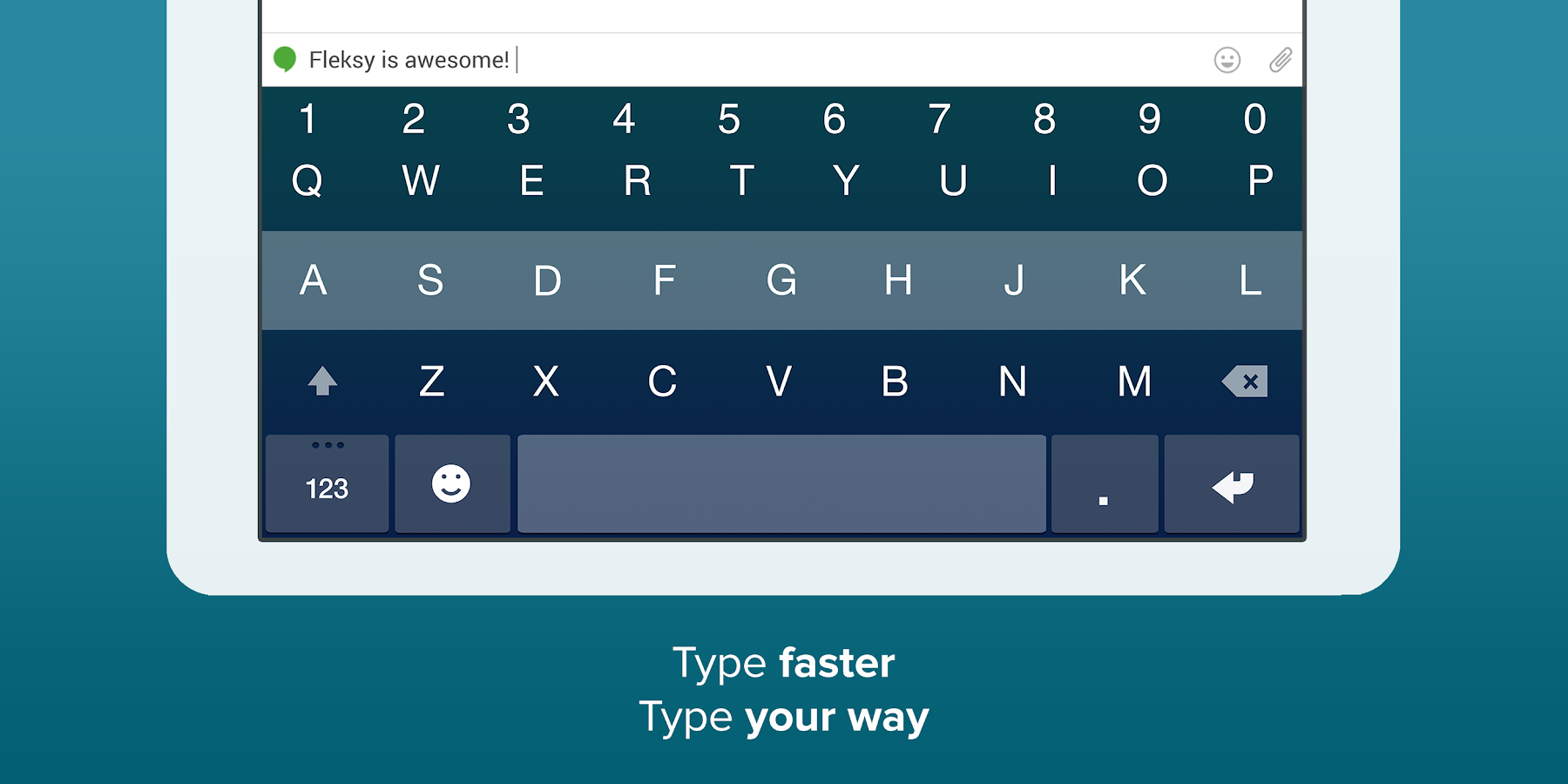 Fleksy is the most fun, customizable way to type, and officially the fastest keyboard in the world. Fleksy is the only keyboard that allows you to find and send GIFs, and customize your keyboard with powerful Extensions and colorful themes.
