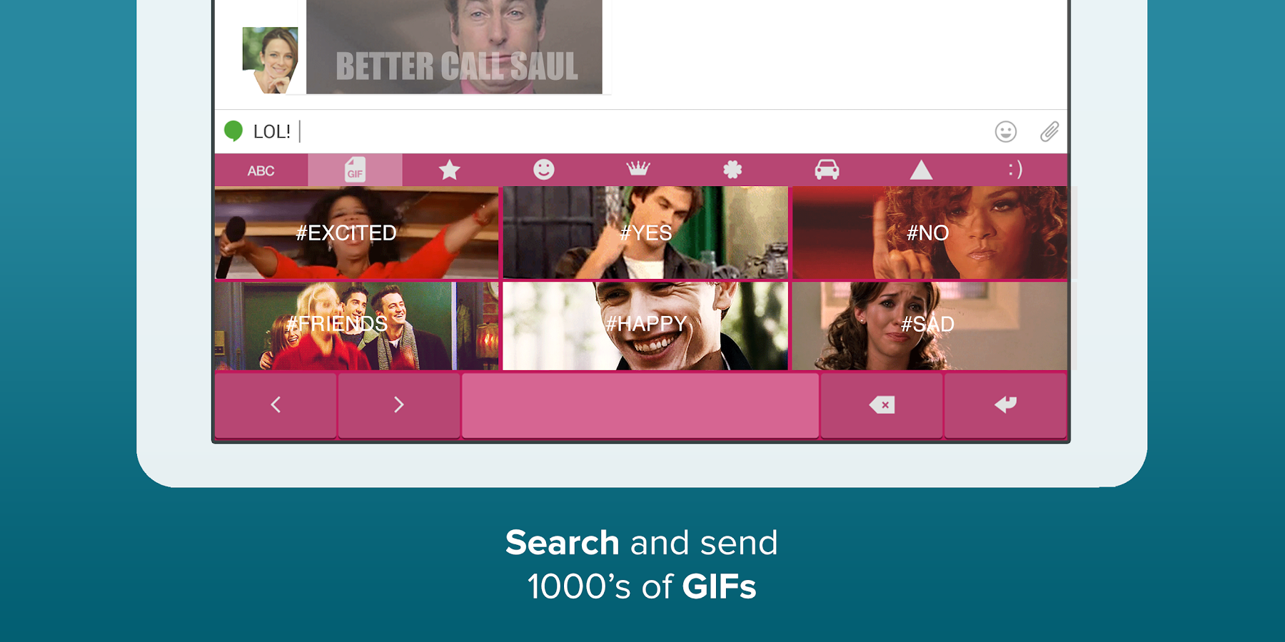 The only keyboard that lets you find and send GIFs. No keyboard is more fun.